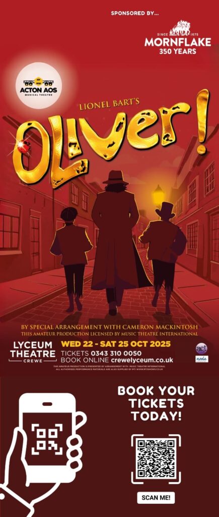 Acton Operatic Society is taking to the stage in a lavish production of Oliver supported by Mornflake in Crewe.