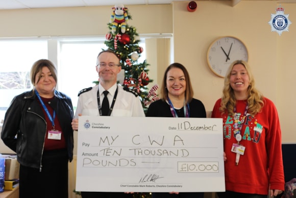 A Crewe-based domestic abuse charity has been awarded £10k from Chief Constable Mark Roberts on behalf of the force on the first day of the Cheshire Constabulary in the Community Christmas initiative.